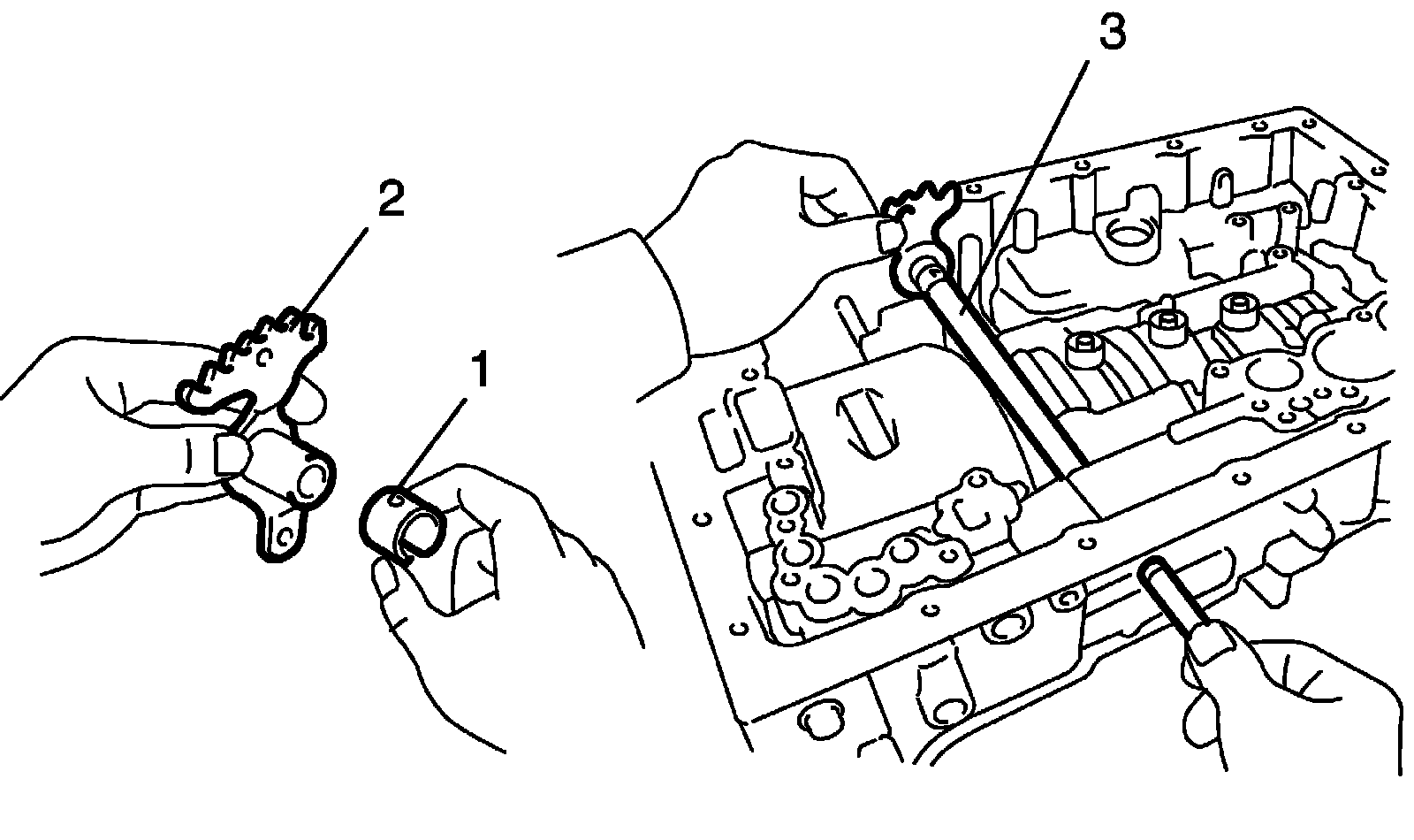77) Install parking lock pawl (2) parking pawl pin (1) and parking pawl spring (3).