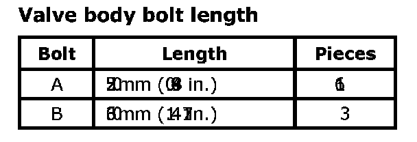 87) Install valve body assembly (2) by using bolts noting their length shown below.