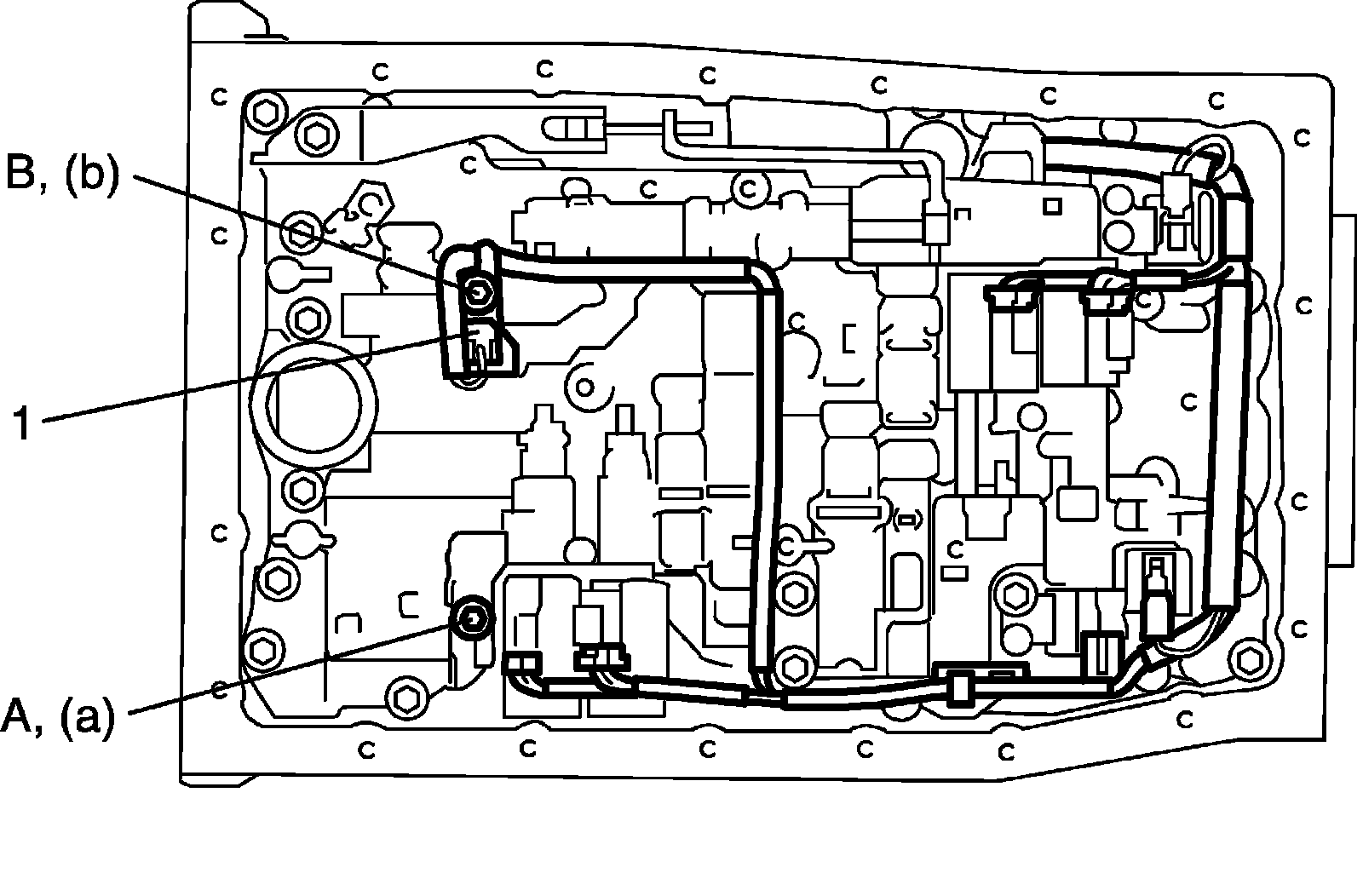 94) Install oil strainer (1) to valve body assembly. Tighten 4 oil strainer bolts to specified torque.