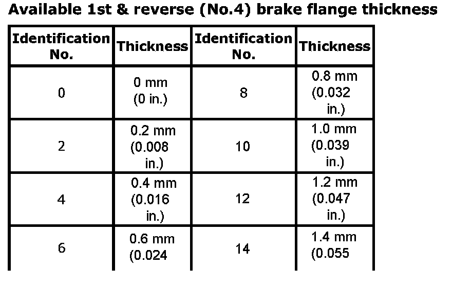 Available (1st, & reverse (No.4) brake flange thickness