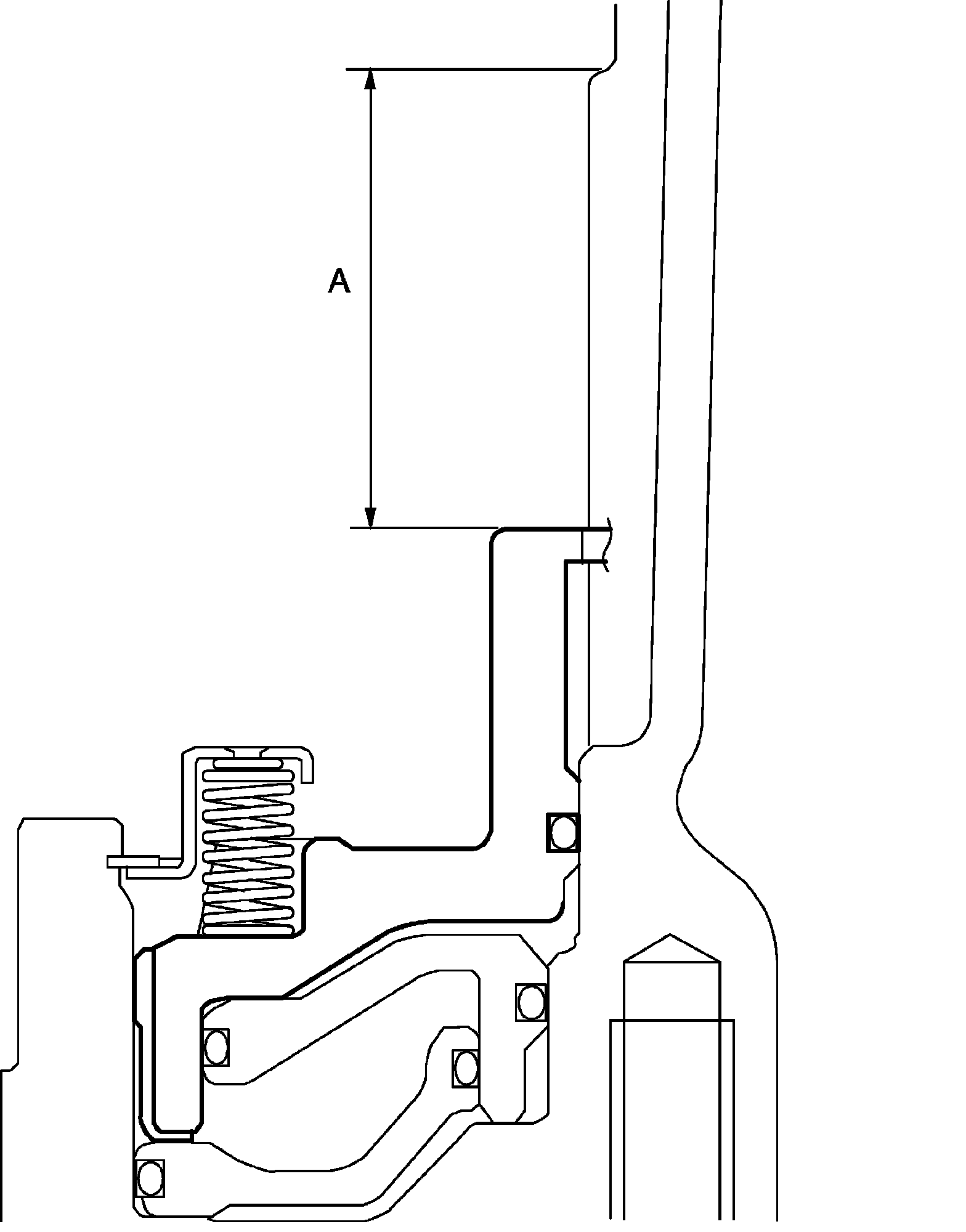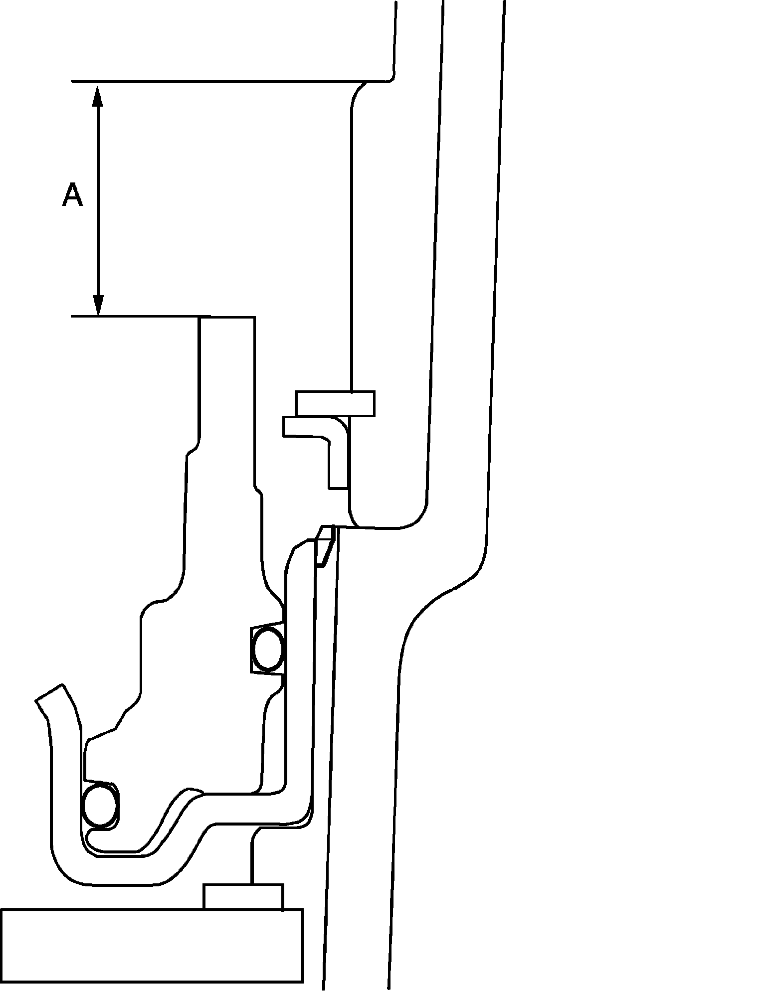 49) Using vernier calipers, measure the level difference (length A) between the upper surface of the No.1 brake piston and the hitting surface of No.1 brake flange at the both end across a diameter, and calculate the average.