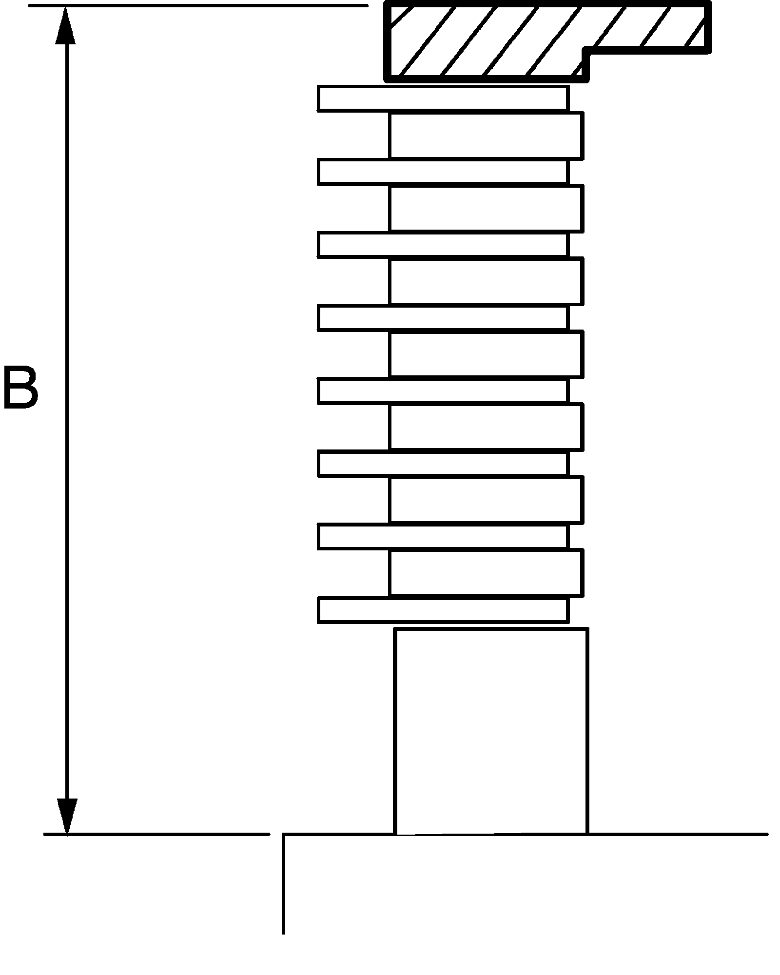 11) Using vernier calipers, measure the thickness (length B) of the 1st & reverse (No.4) brake flanges, the 1st & reverse (No.4) brake plates and the 1st & reverse (No.4) brake discs altogether at the both end across a diameter, and calculate the average.