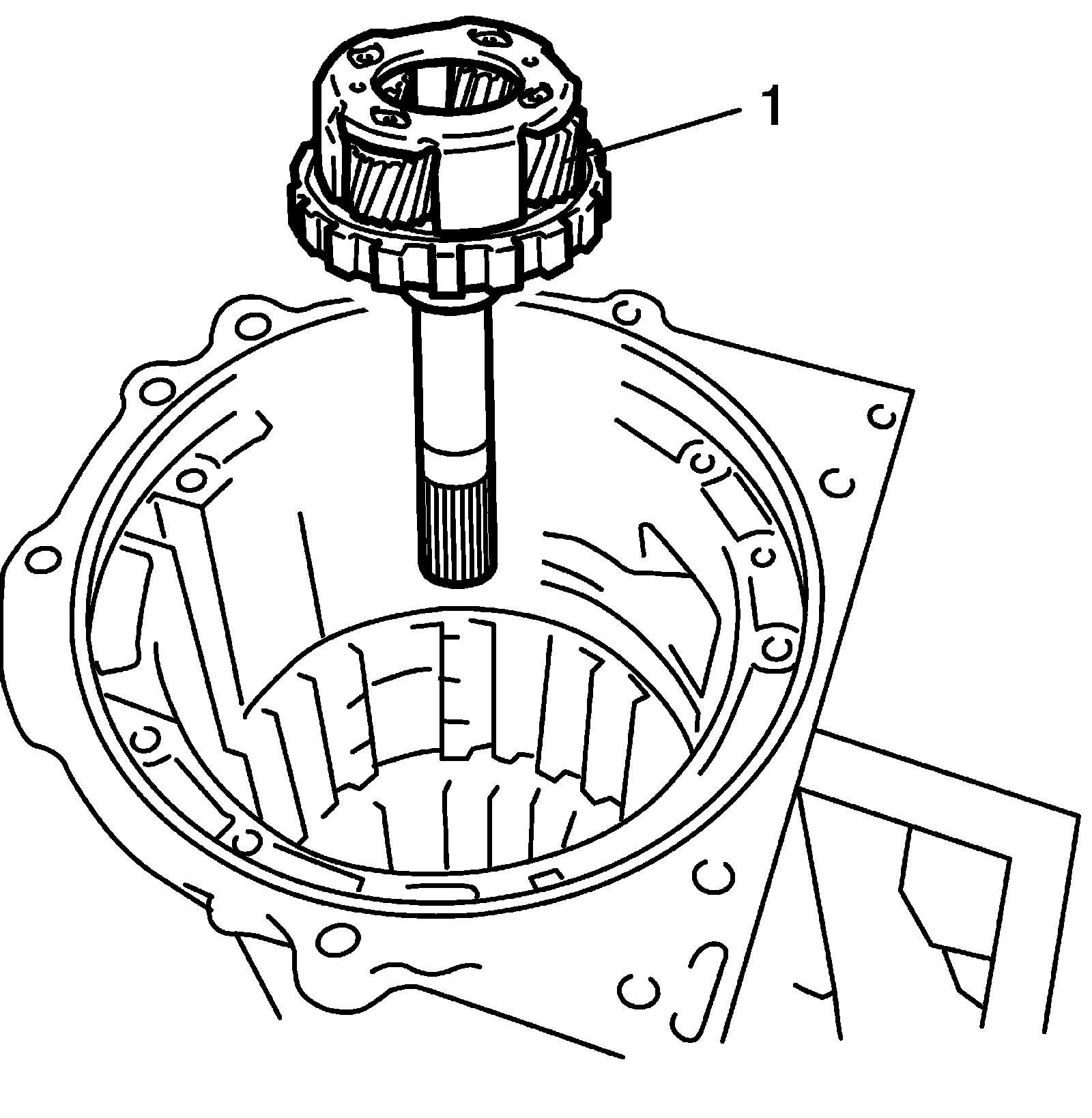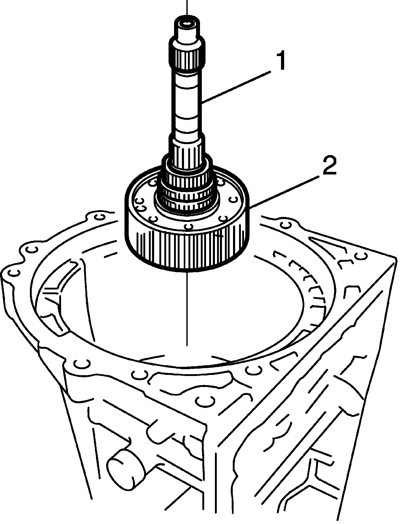 19) Install intermediate shaft (1) including planetary ring gear flange assembly (2) to transmission case.