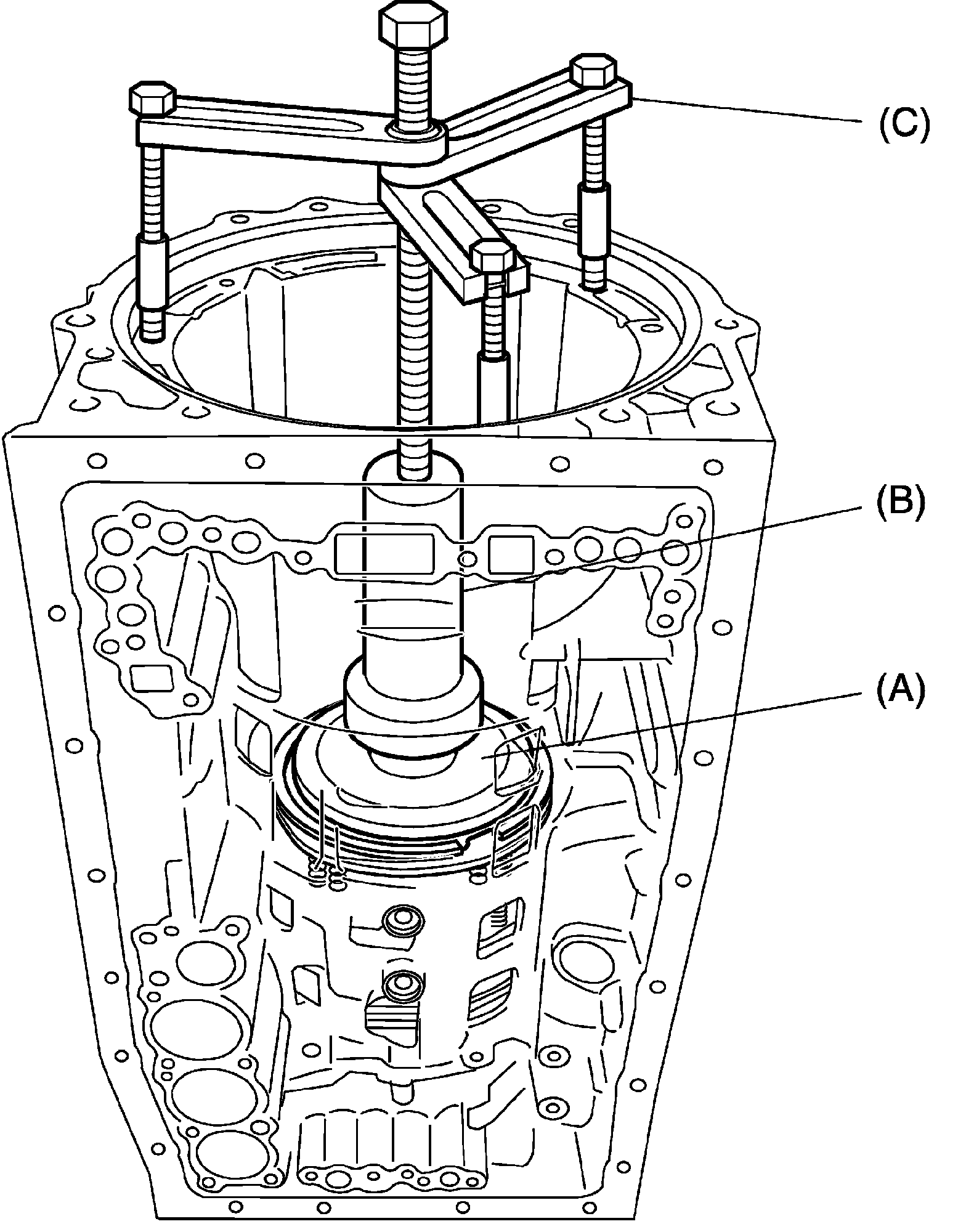 Be careful when applying pressure, for overpressure will cause plate section of No.1 brake piston return spring to deform.