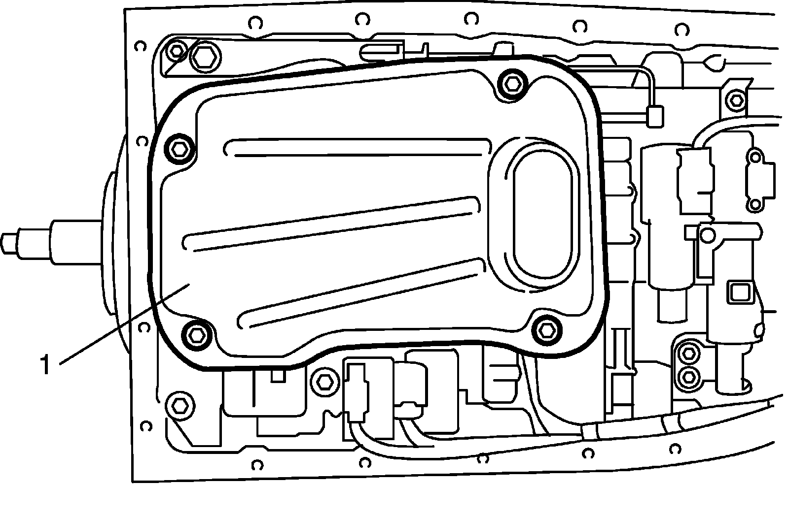 7) Remove A/T oil strainer (1).