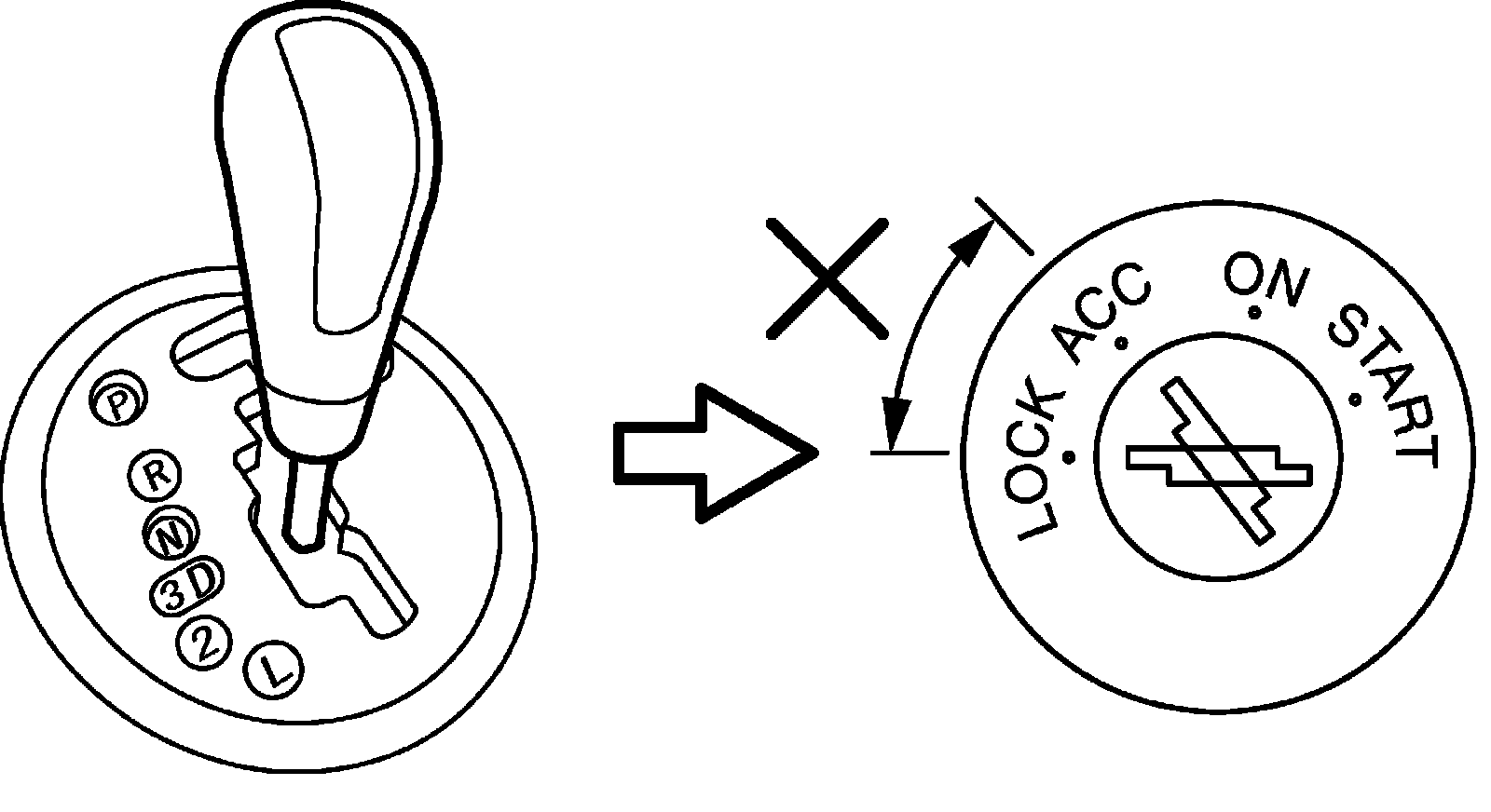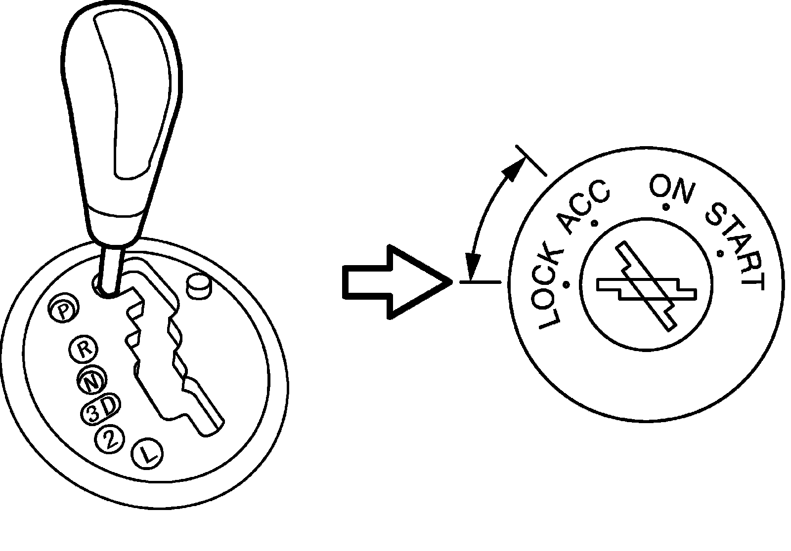 3) With ignition lever shifted to any position other than "P" range, check that ignition key cannot be turned LOCK position and it cannot be removed from ignition switch unless it is at LOCK position.