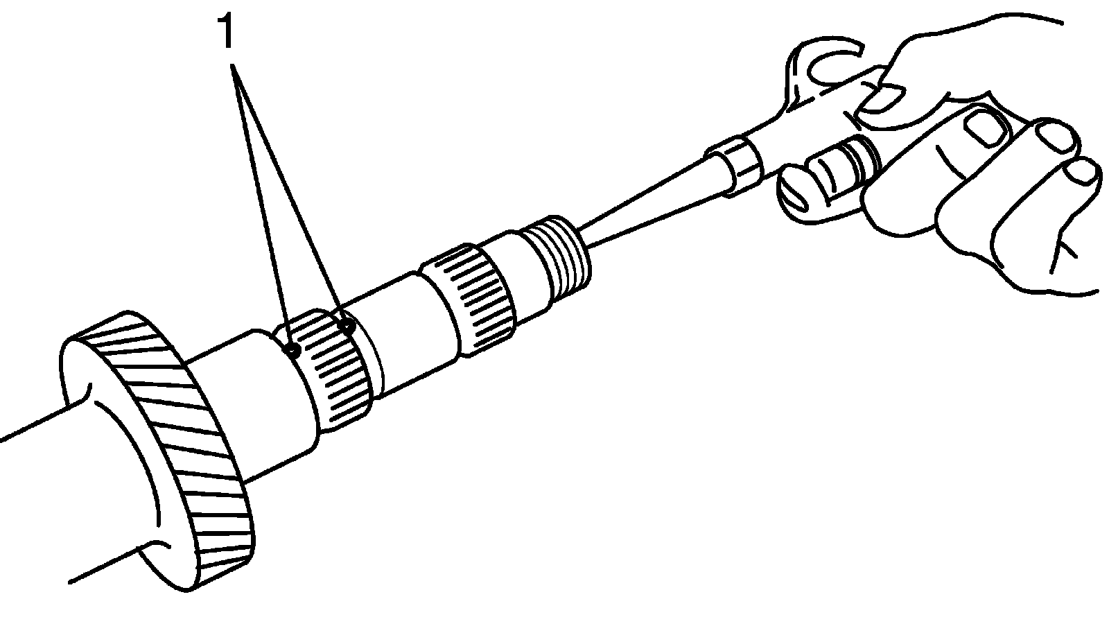 2) To ensure lubrication, air blow oil holes (1) and make sure that they are free from any obstruction.
