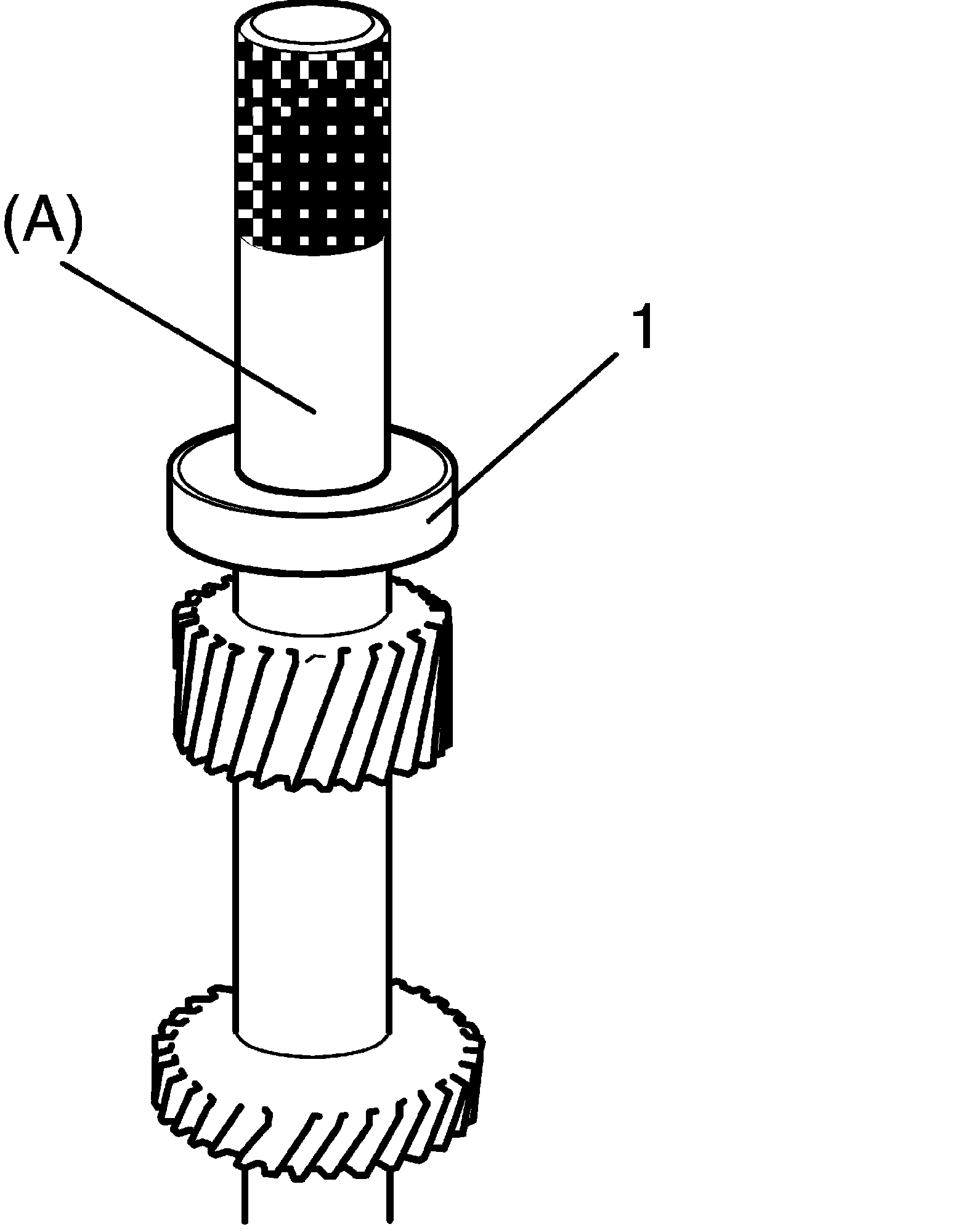 8) Apply oil to countershaft gear needle bearing, and then countershaft low needle bush, needle bearing and 1st gear (1) to countershaft.
