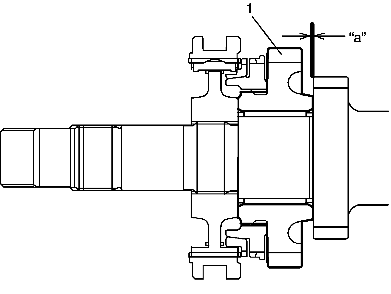 11) Check low gear (1) thrust clearance by using thickness gauge. If clearance is out of specification, repress-fit or replace defective part.