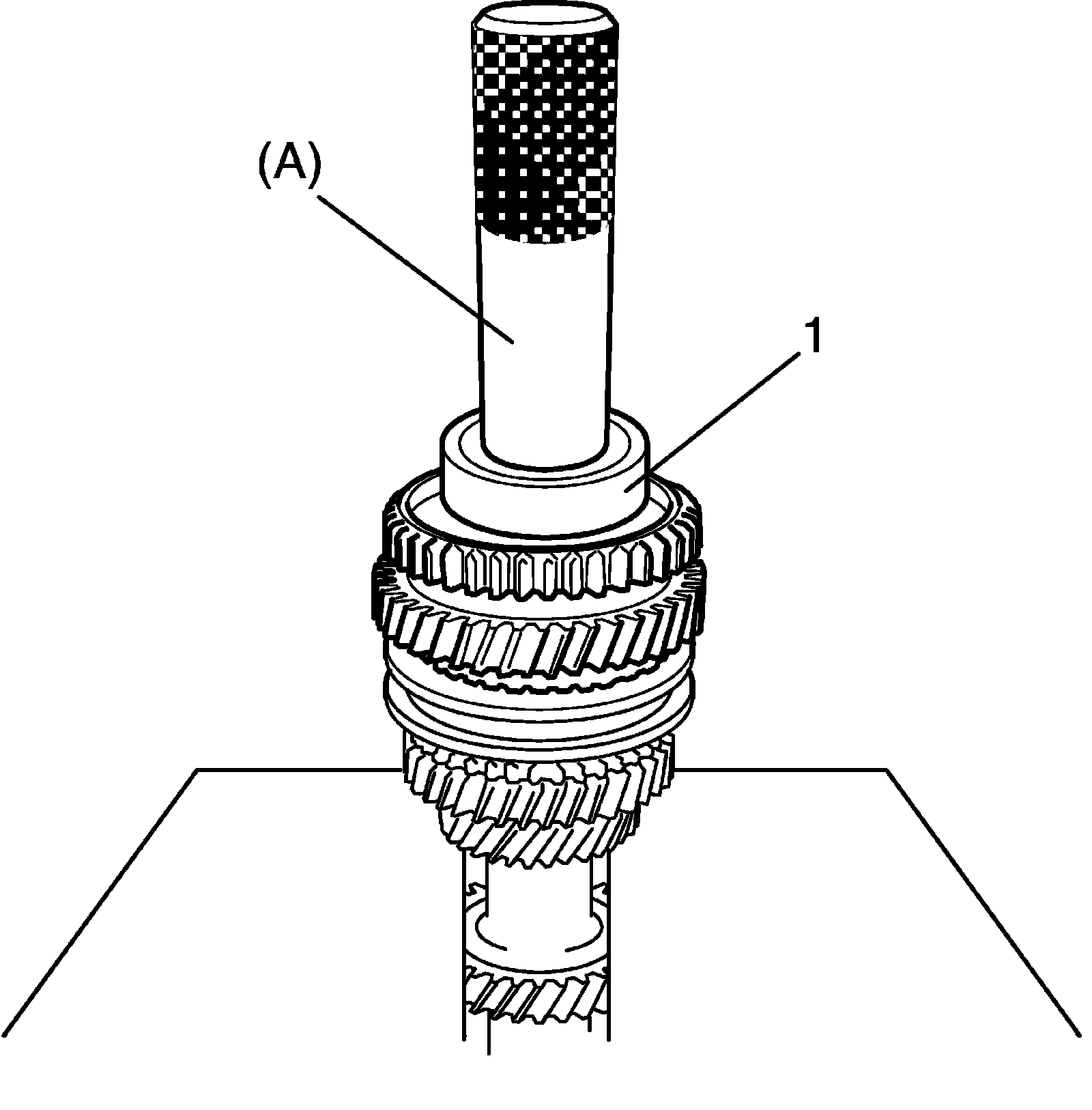 6) Drive in low speed synchronizer assembly (1) using special tool and hammer.