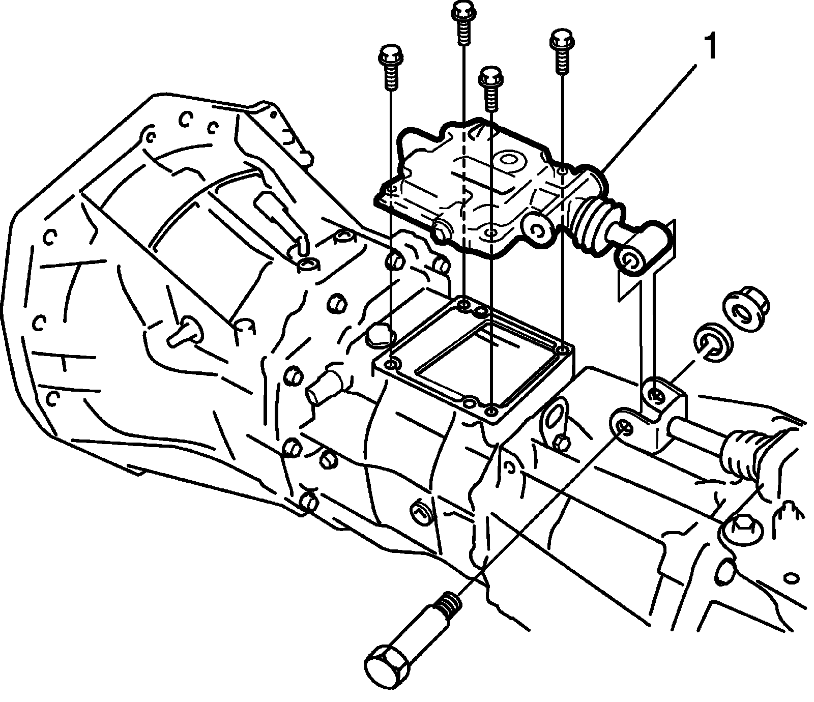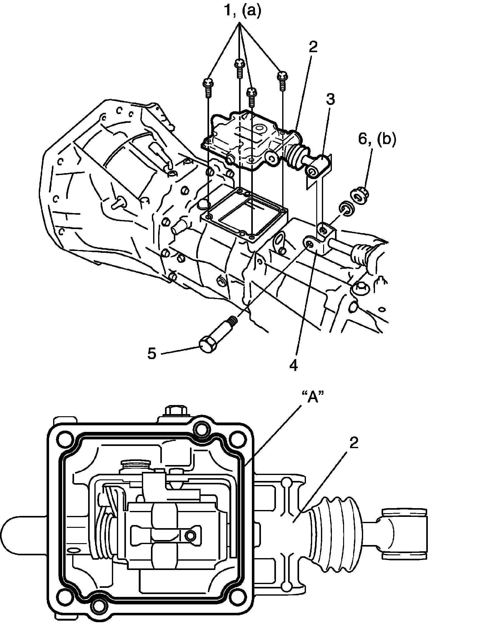 2) Remove gear shift lever front case assembly (1) from transmission rear case.