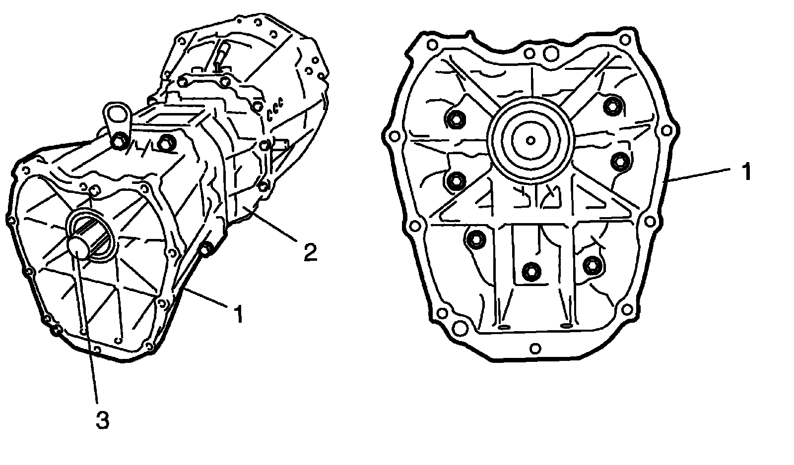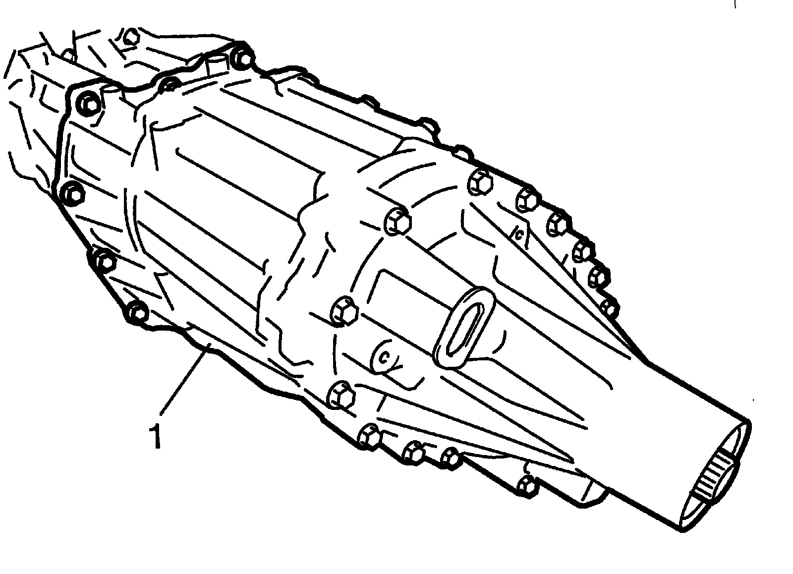 3) Separate transfer assembly (1) or extension case from transmission assembly.