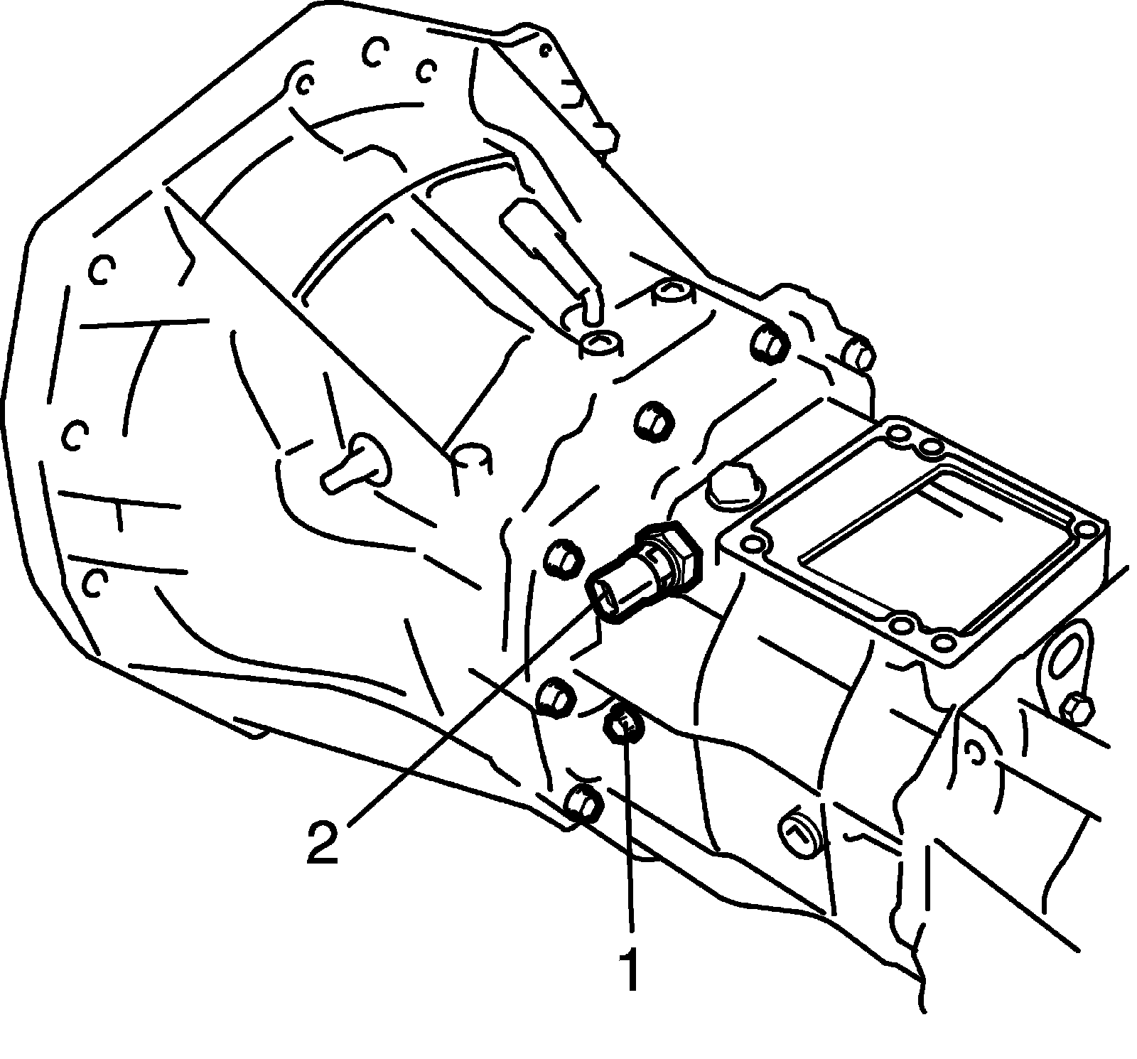 6) Remove reverse shaft bolt (1) and back up light switch (2).