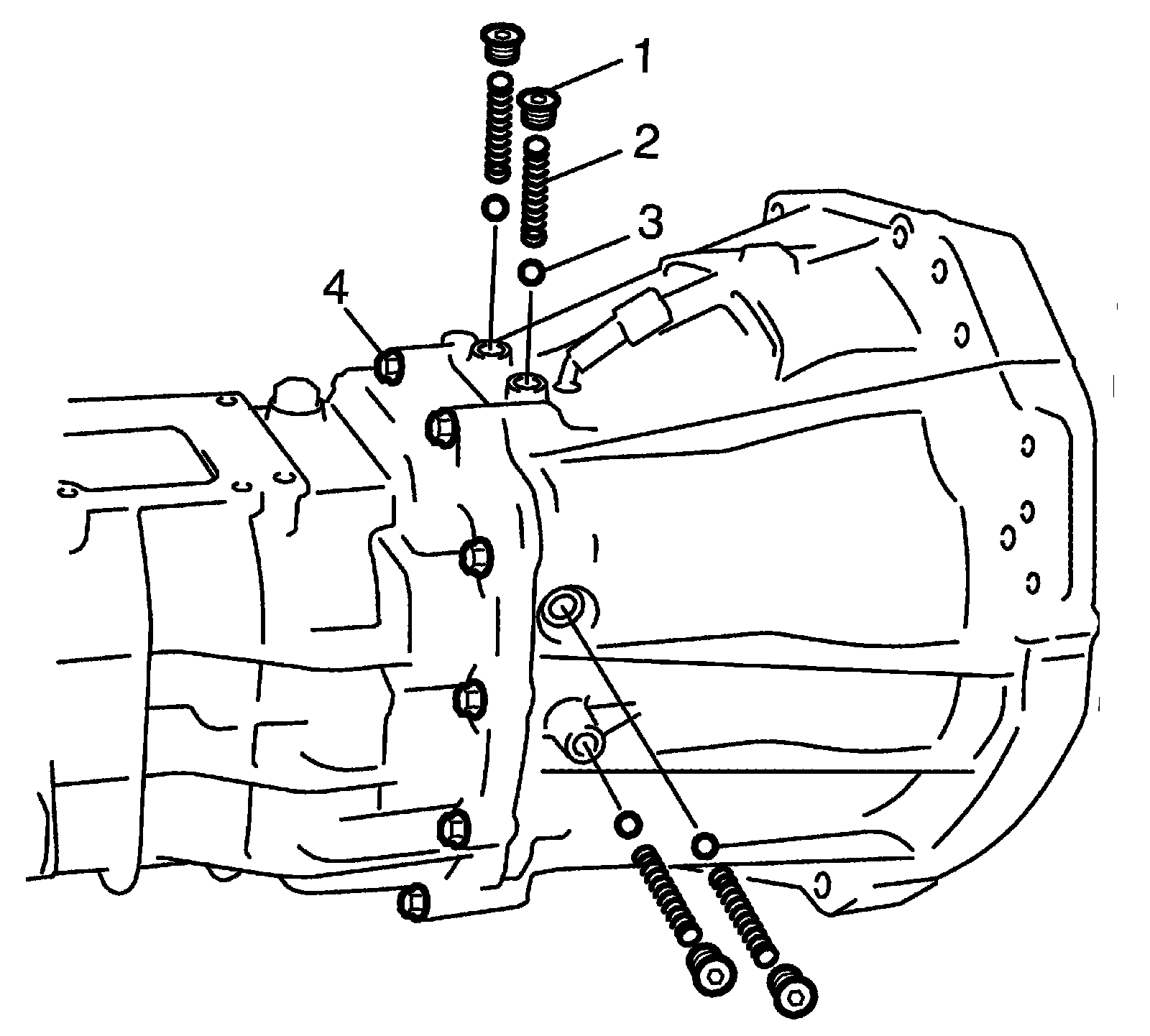 7) Remove gear shift locating bolts (1), then take out locating springs (2) and gear shift shaft balls (3).