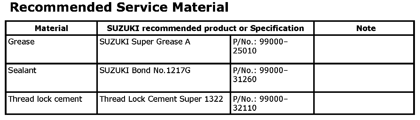 Recommended Service MaterialNOTE: