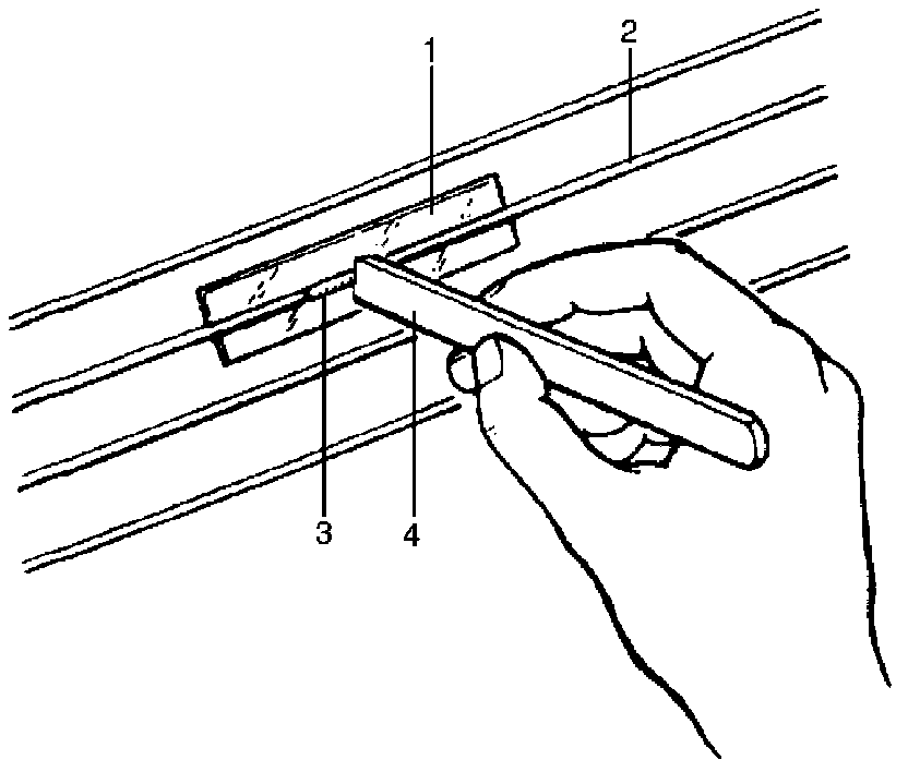 3. Apply commercially-available repair agent (3) with a fine-tip brush (4).