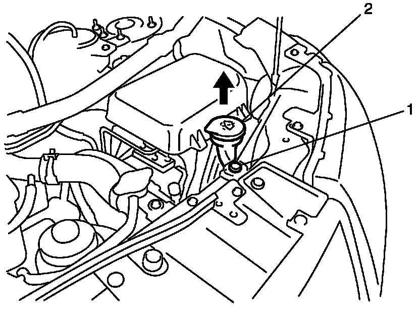4. Remove grommet (1) and upper part (2) of washer tank.