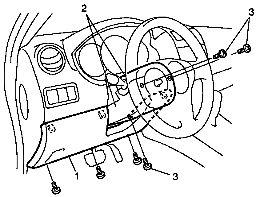 4. Remove windshield wiper and washer switch (1) from combination switch assembly (2) and disconnect its coupler (3).