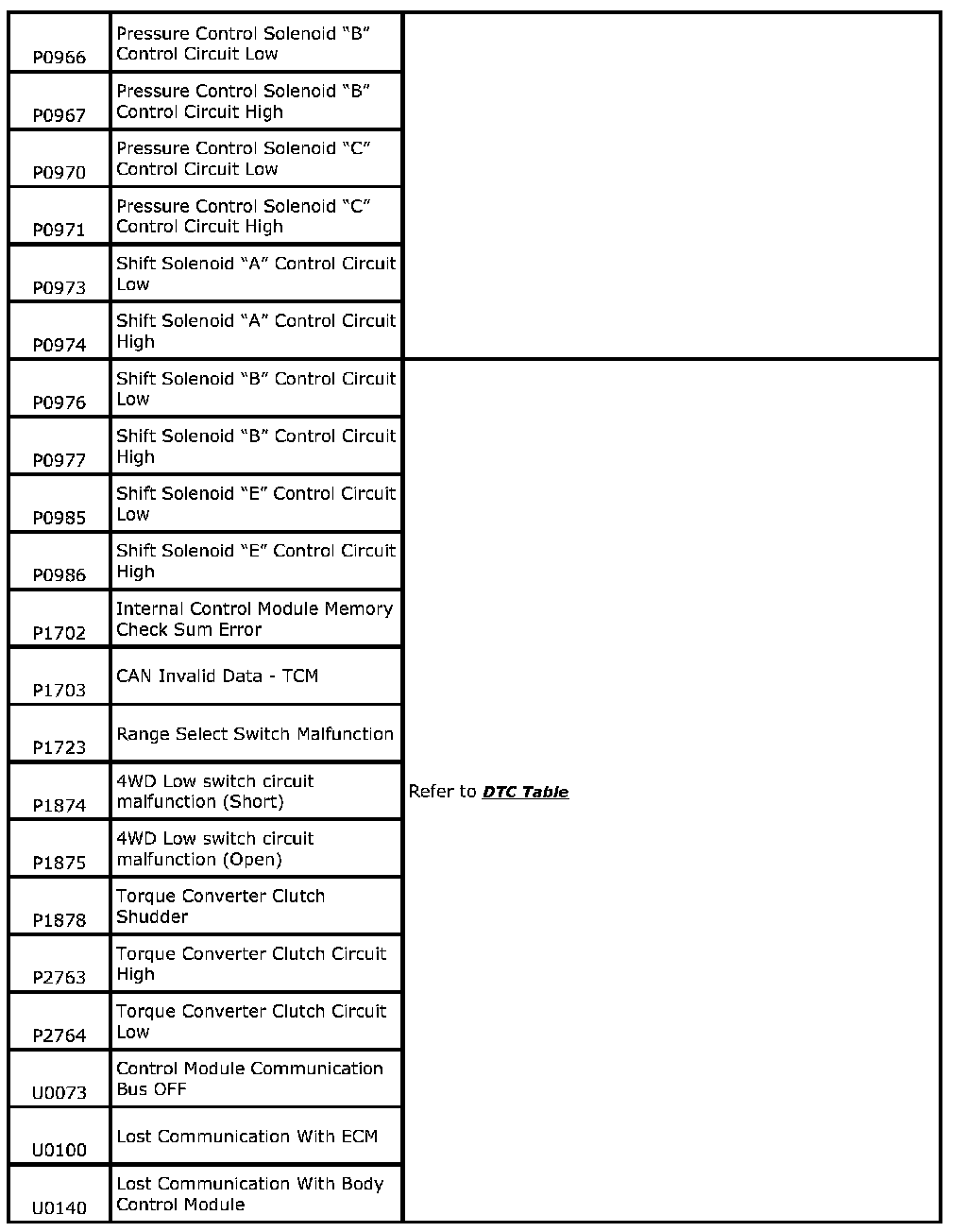 P Codes - Automatic Transmission