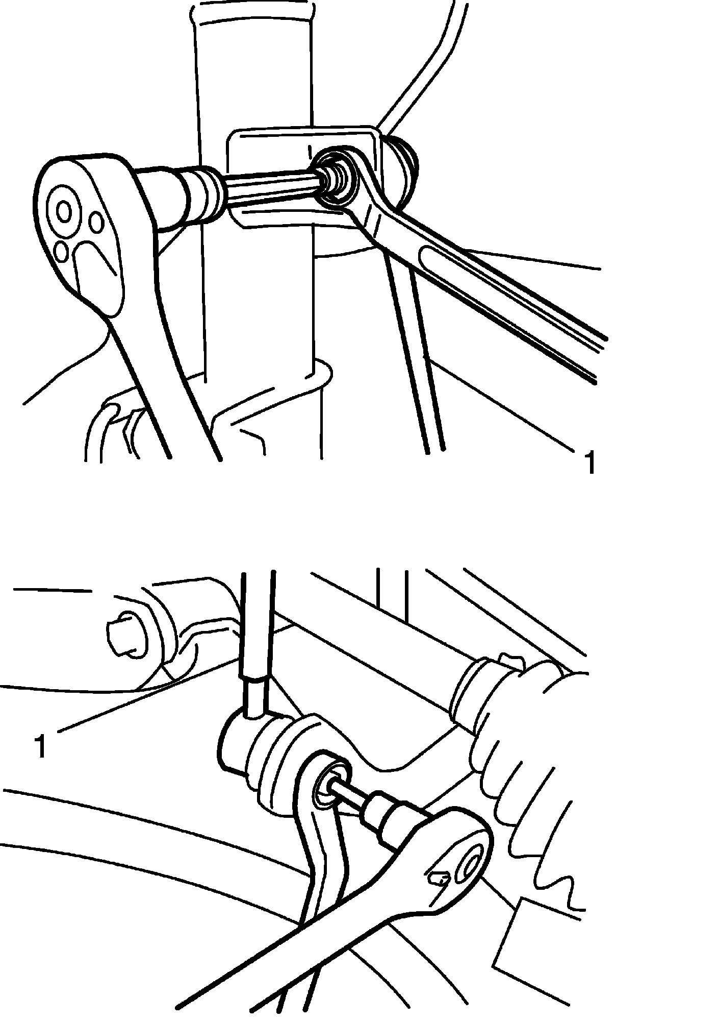 5) Remove stabilizer joints (1). When loosening joint nut, hold stud with hexagon wrench.