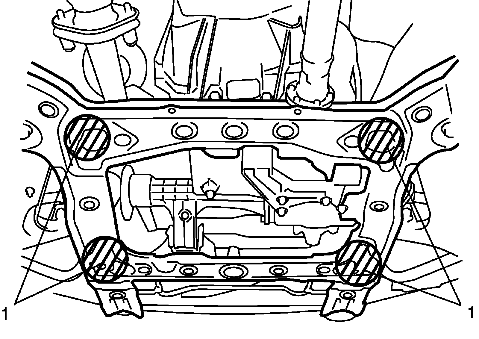 12) Support suspension frame at the specified positions (1) indicated in figure.