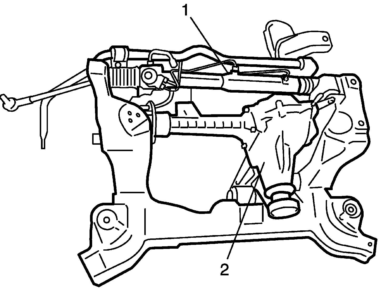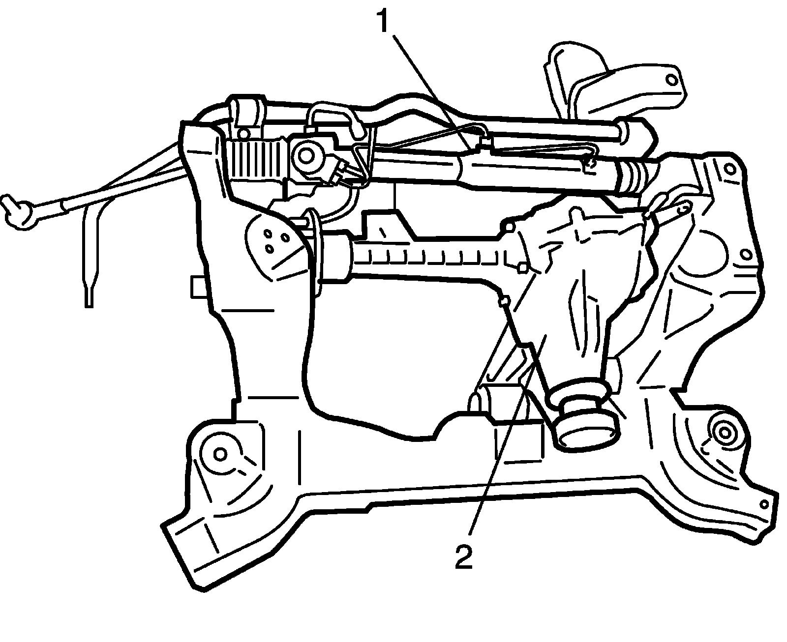 15) Remove P/S gear box assembly (1) and front differential assembly (2) (if equipped).