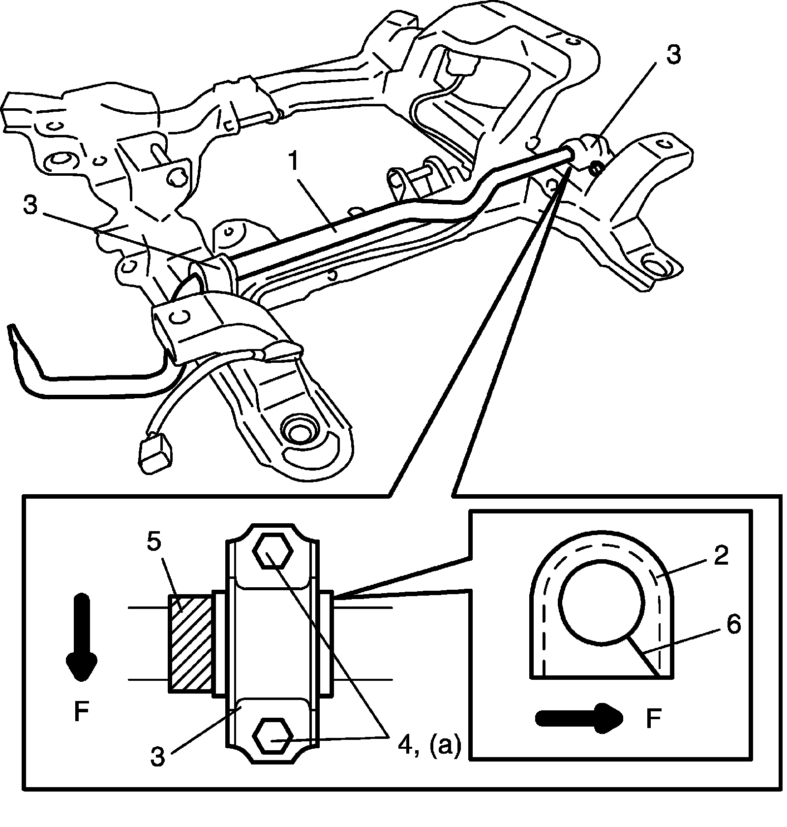 ^ Install stabilizer bushing so that a cut (6) becomes forward.