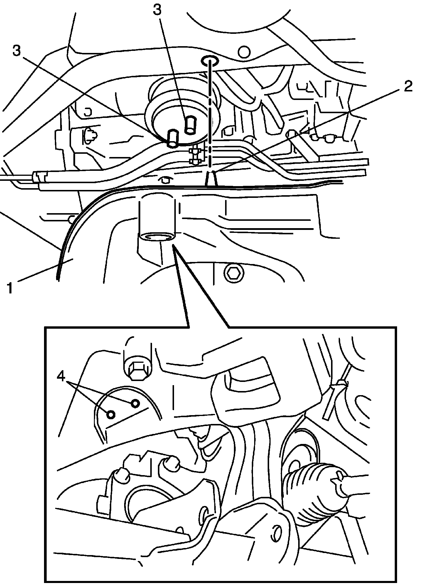 7) Detach low pressure return hose (2) from low pressure return pipe (3) and then disconnect pipe bracket (1).