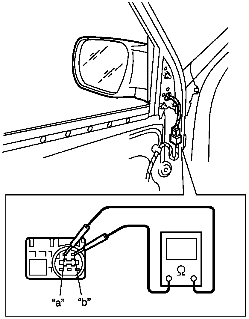 3. Check for continuity between terminals "a" and "b". If no continuity, replace outside mirror.