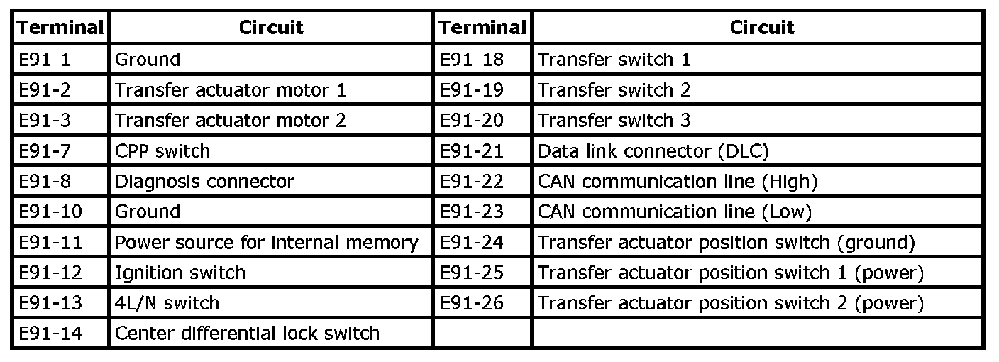 Terminal Arrangement of 4WD Control Module