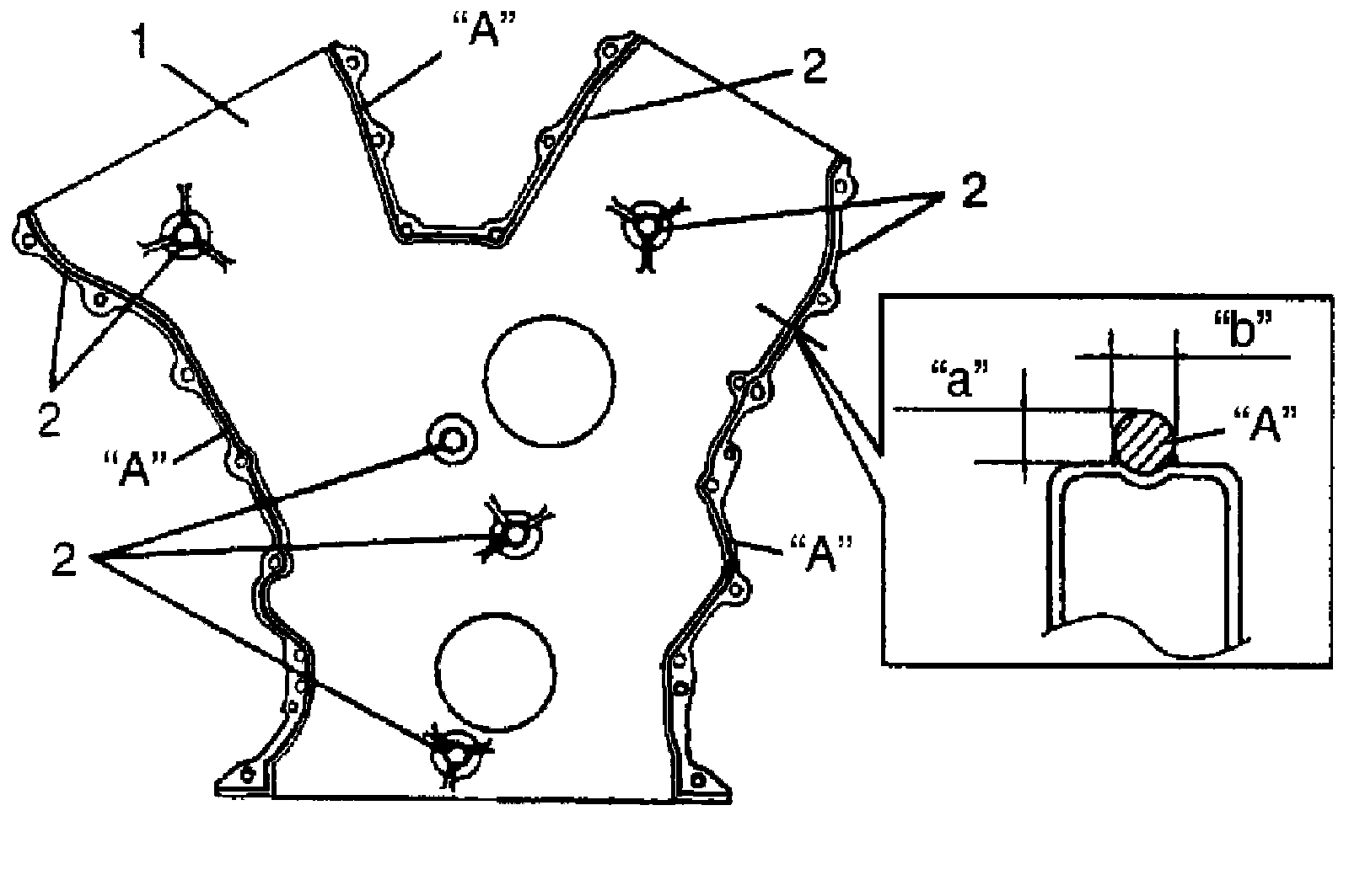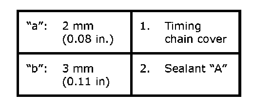 ^ Apply sealant "A" to timing chain cover sealing surface area as shown in figure.