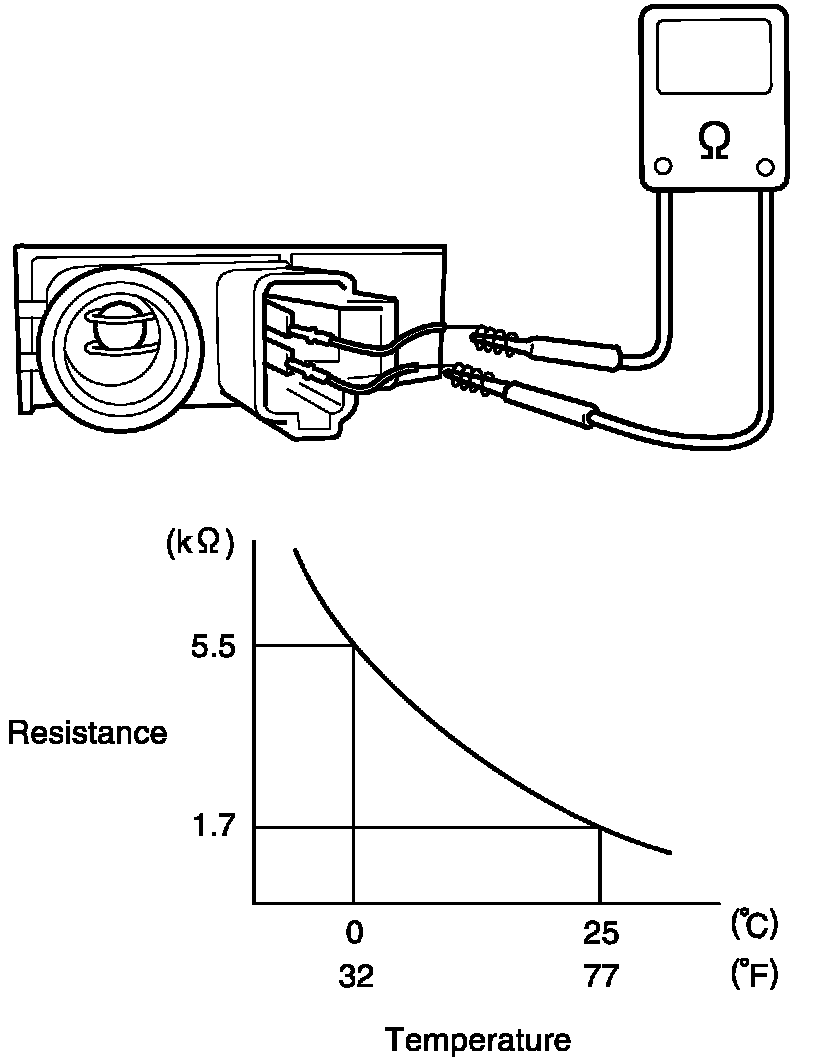 Inside Air Temperature Sensor Inspection1. Remove Inside air temperature sensor referring to Inside Air Temperature Sensor Removal and Installation.