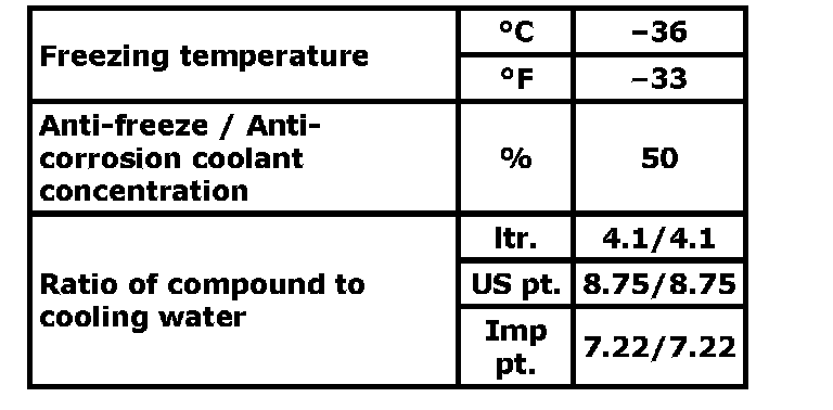 ^ Maintain cooling system freeze protection at -36°C (-33°F) to ensure protection against corrosion and loss of coolant from boiling. This should be done even if freezing temperatures are not expected.