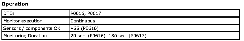 Refer to DTC P0616 / P0617: Starter Relay Circuit Low / High.