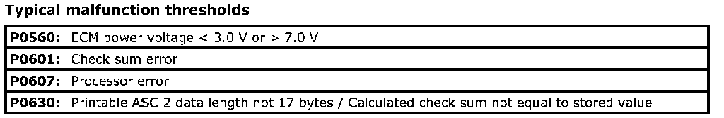 Typical Malfunction Thresholds: