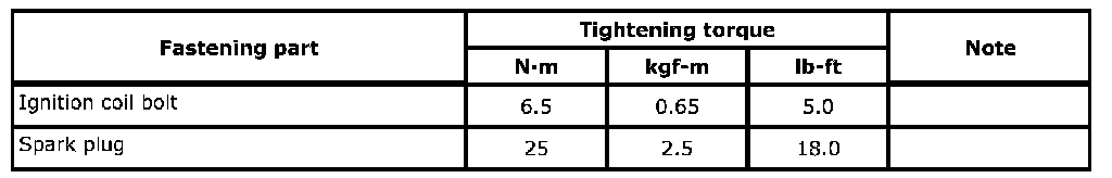 Tightening Torque Specifications: