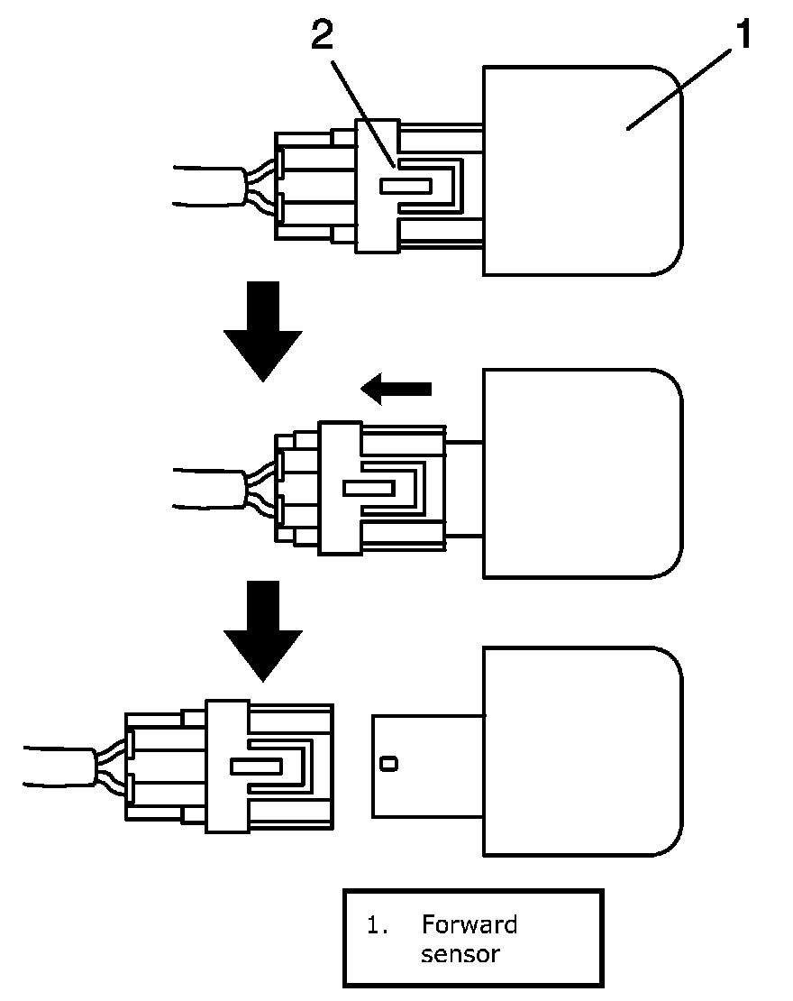 3. Disconnect forward-sensor connector sliding connector outer (2) as shown.