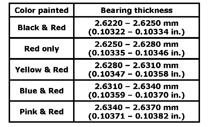 Main Bearing Cross-Reference Table (Undersize Bearing)