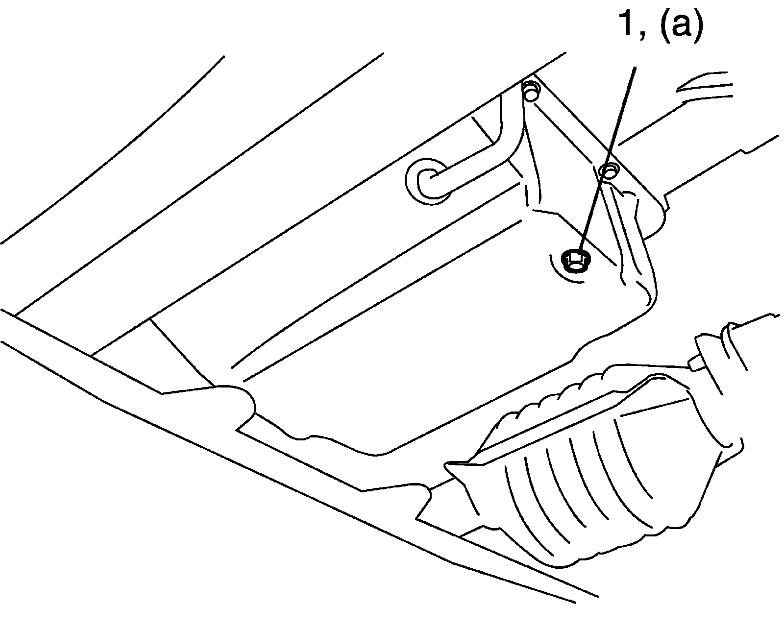 2) When engine is cool, remove drain plug (1) from oil pan and drain A/T fluid.