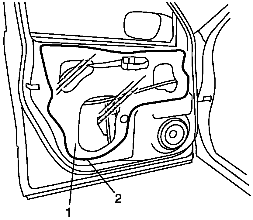 1. Remove door mirror trim (1. and door trim screw cover (2).