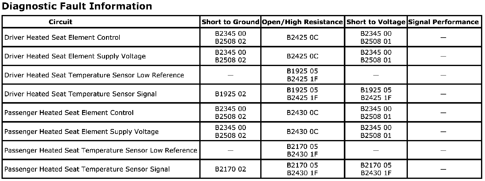 DTC B2170 05 Right Seat Cushion Heater Sensor Circuit Shorted to Battery or Open