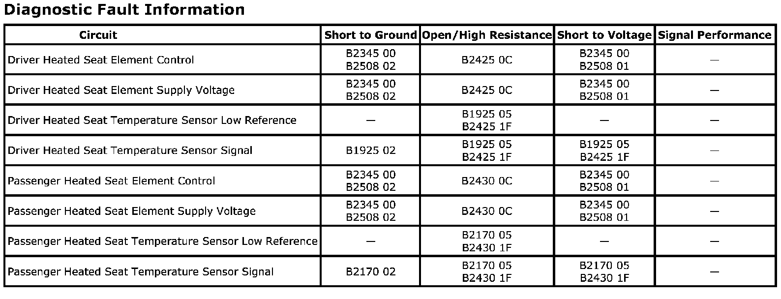 DTC B2425 0A Left Seat Heater Circuit Rate of Change Below Threshold
