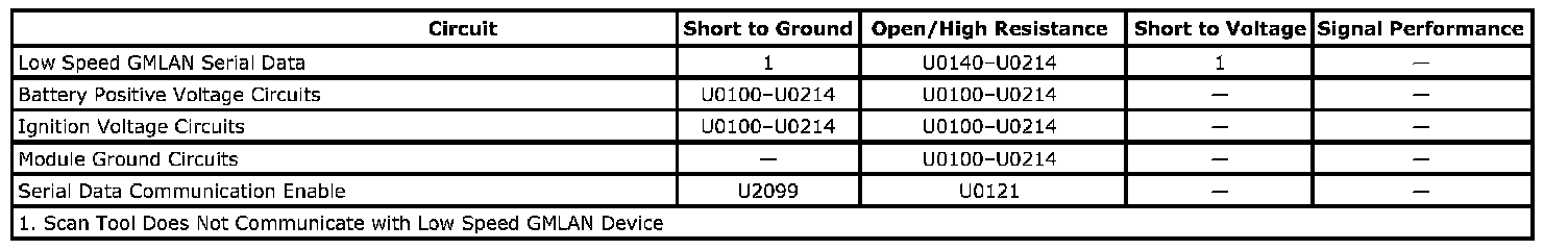 ^ If greater than 1 ohm, test the low speed GMLAN serial data circuit for open/high resistance.