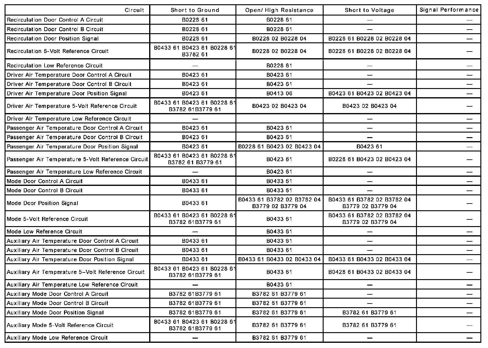 DTC B0423 61 Temperature Control 2 Feedback Circuit Actuator Stuck
