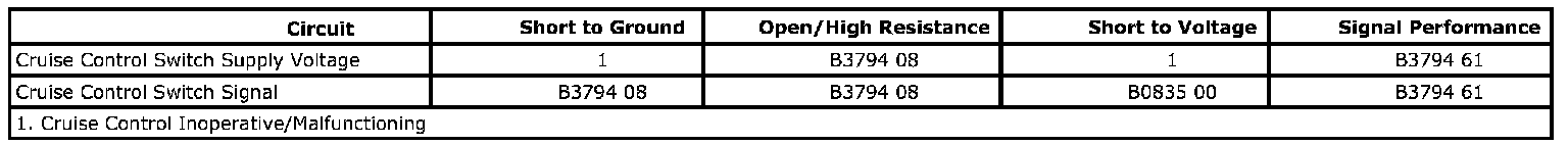 DTC B3794 08 Cruise Control Function Request Circuit Signal Invalid.