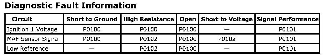 DTC P0100 Mass Air Flow (MAF) Sensor Circuit