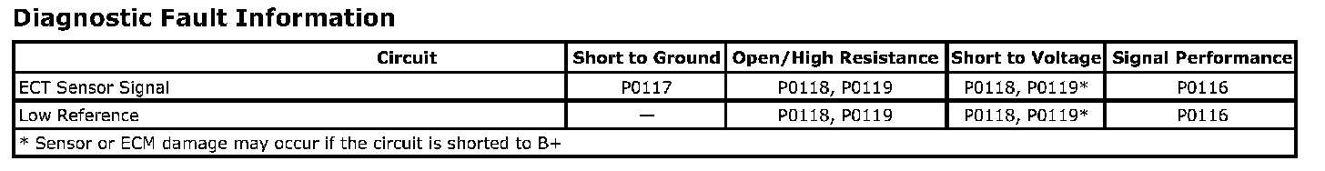 DTC P0117 Engine Coolant Temperature (ECT) Sensor Circuit Low Voltage