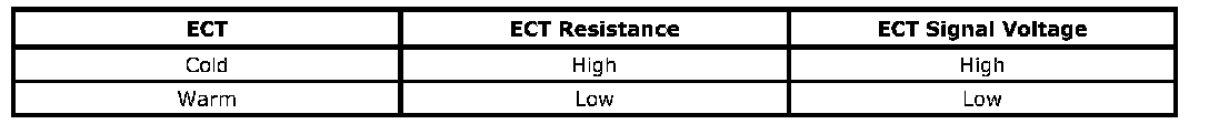 The engine coolant temperature (ECT) sensor is a variable resistor that measures the temperature of the engine coolant. The engine control module (ECM) supplies 5 volts to the low reference circuit.