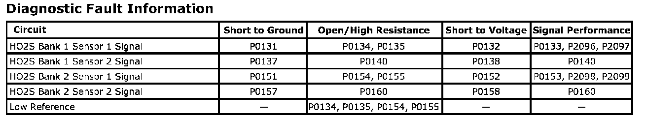 ^ DTC P0036, P0037, P0038, P0057, P0058, P0137, P0138, P0140, P0141, P0157, P0158, P0160, P0161, P0300, P0301, P0302, P0303, P0304, P0305, P0306, P0442, P0443, P0455, P0458, P0459, P2096, P2097, P2098, P2099, P2177, P2178, P2179, P2088, P2089, P2090, P2231, P2232, P2234, P2235, P2270, P2271, P2272, and P2273 is not set.