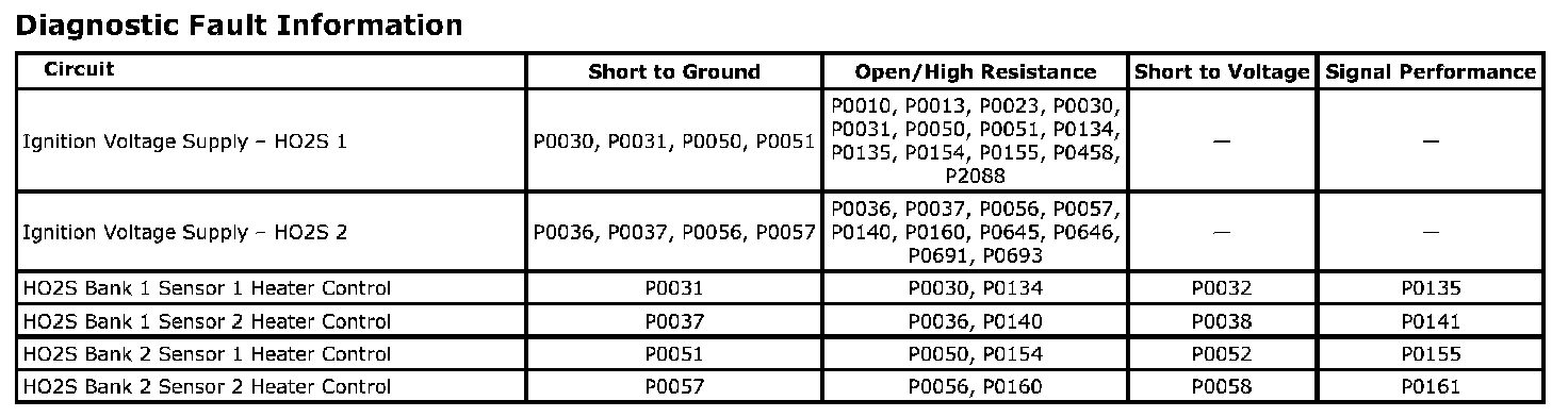 ^ Before the ECM can report DTC P0135 or P0155 failed, P0030, P0031, P0032, P0050, P0051, and P0052 must run and pass.